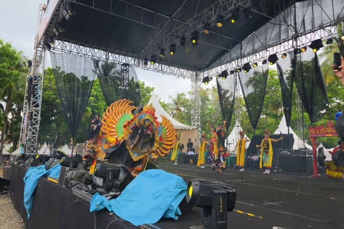 Keindahan kostum tradisional yang dikenakan para penari, dipadukan dengan iringan musik daerah yang menggema penuh energi, sukses memukau penonton